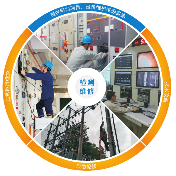電力增容、用電系統(tǒng)及用電設(shè)備檢測(cè)&維護(hù)檢修、電力托管、智能運(yùn)維、無(wú)人值守、光儲(chǔ)充綜合能源管理系統(tǒng)及應(yīng)用、人防、安防設(shè)備維護(hù)與安裝、用電設(shè)備故障修復(fù)、保電服務(wù)、配電室標(biāo)準(zhǔn)化、工程施工、成套設(shè)備生產(chǎn)及就位等。