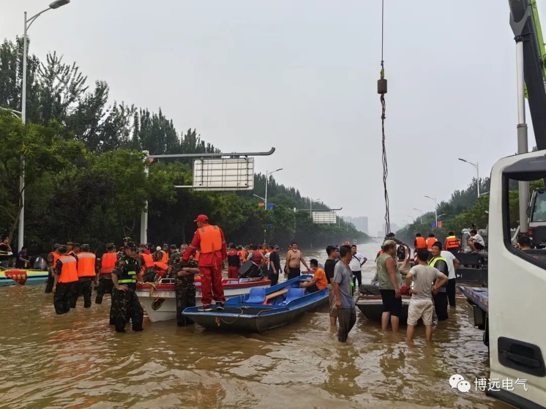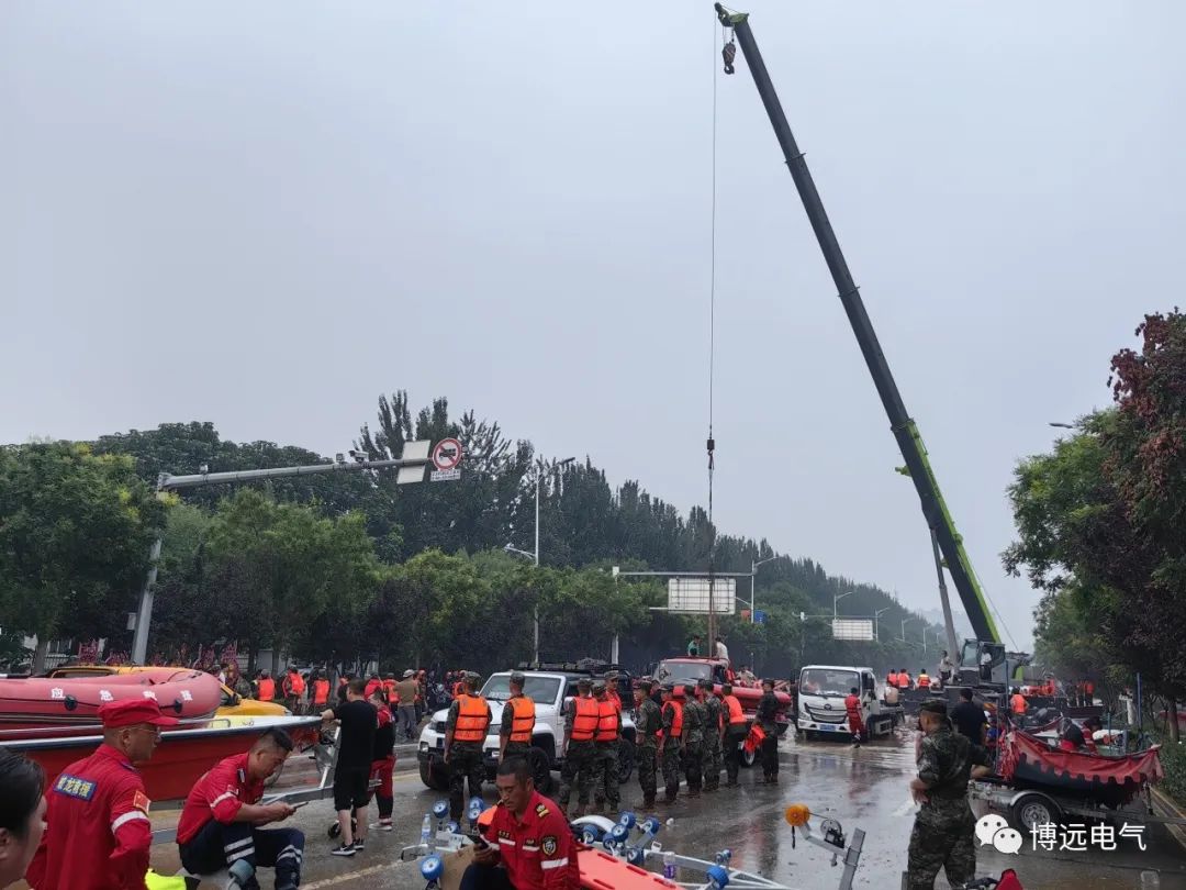 連日來,由于極端強(qiáng)降雨天氣和上游河道行洪等因素,保定涿州防汛形勢嚴(yán)峻。八方馳援,同舟共濟(jì),在了解涿州受災(zāi)情況后博遠(yuǎn)電氣涿州辦事處第一時(shí)間組織人員協(xié)助救援隊(duì)參與到救人行動中。